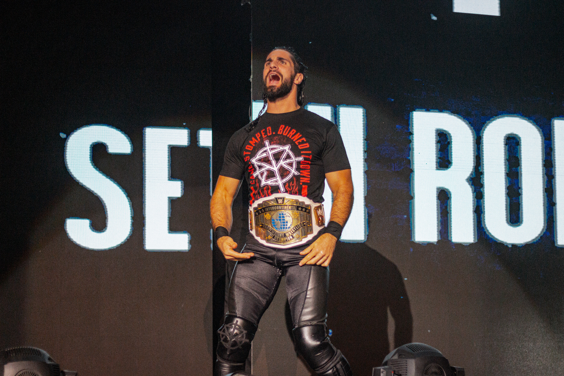 Roman Reigns hace su entrada en el WWE Live Buenos Aires en el Luna Park de Buenos Aires, Argentina el 6 de septiembre de 2019